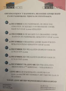 22 en 23 december is Brasserie Gooije Raod nog gewoon geopend voor de lunch tot 15.00u